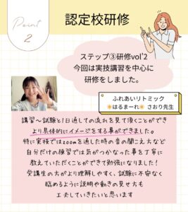 さおり先生はお伝えした事に対しての適応力が高く、講習の度に完成度が上がっていますので、この調子でどんどん仕上げていきましょう!